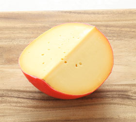 輸入用には赤いワックスがコーティングされていて、「赤玉チーズ」と呼ばれることもあります。中身は薄黄色で引き締まっていて、マイルドな味わいに加え後味には酸味があります。