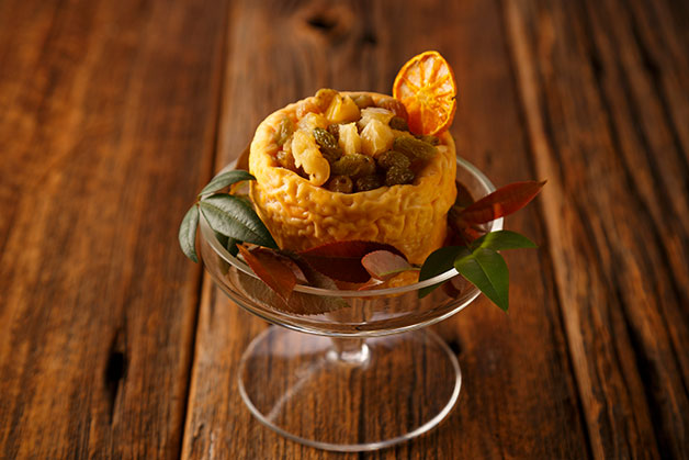 | 見た目の特徴 | 表皮は黄色~赤褐色で、一面に深いシワがよっていて、中心に窪みがある。 |