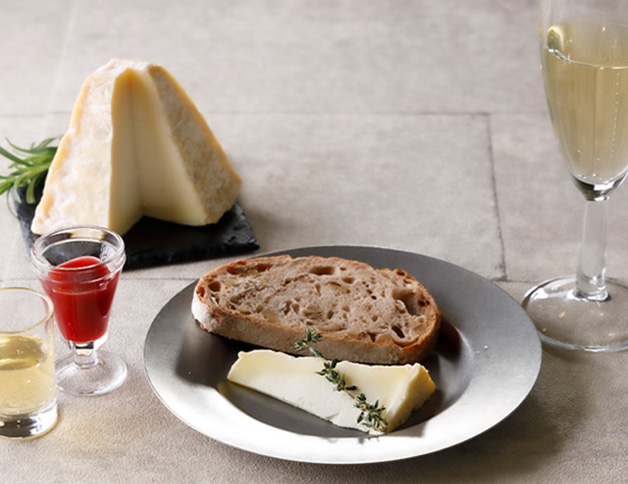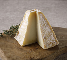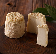 表皮は薄く、青みがかった白でしっとりしています。若い頃は酸味を感じますが、熟成すると表皮は乾きコクが増しクリーミーな味わいに。通向きのチーズと言えます。