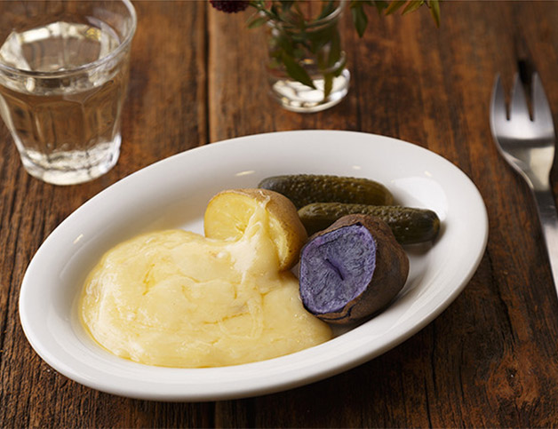 スイス料理「ラクレット」は、ラクレットオーブンと呼ばれる専用器具を使って、厚さ1cmほどにスライスしたラクレットをテーブルの上で溶かしながらじゃがいもにつけて食べます。ラクレットオーブンのない日本の家庭では、ホットプレートで温めると、その豊かな香りとおいしさを手軽に楽しめます。またホットプレートを使わず、茹でたじゃがいもに直接のせてオーブンで焼いても良いでしょう。
