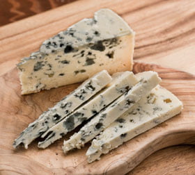 ロックフォールは、真っ白なチーズの地肌に青カビの鮮やかな模様が美しいチーズです。独特のピリッとした刺激と、クリーミーな味わいのハーモニーが楽しめます。塩分も多く、非常に個性的な味わいです。まさに通好みの味と言えるでしょう。