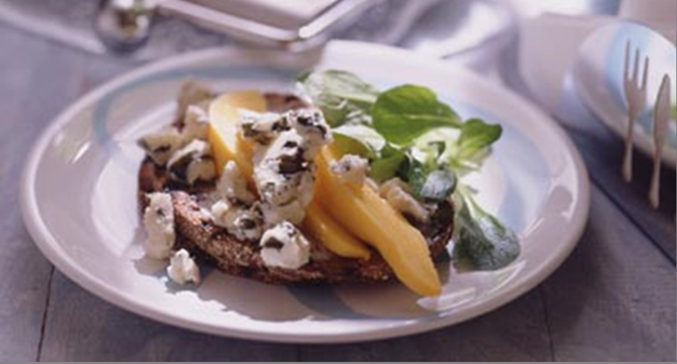 チーズ好きの行き着くところブルーチーズ、という声がある。となれば、極めつけはロックフォールではないだろうか。真っ白なボディに美しい青緑色のマーブル模様。喉から鼻孔に突き抜けるような青かびの刺激と、クリーミィなチーズとが相まった印象強い味はチーズ好きを唸らせる。1998年サッカーのワールドカップで、日本が初戦を戦ったフランス西部の都市トゥールーズから東へ150km。荒涼とした大地の中に忽然と巨大な岩山が姿を現す。この山肌にへばりついたような集落がロックフォール村。ここの岩山の洞窟で熟成させたものしかロックフォールを名のることはできない。それがまた、食指をそそる。洞窟の中にはいつも冷涼な風が漂い、かびの胞子を運んでくるという。写真のメニューはロックフォールとパパイヤのオープンサンド。フルーツの瑞々しさと自然の甘味が、ピリッとした刺激を口当たり良く包んでくれる。