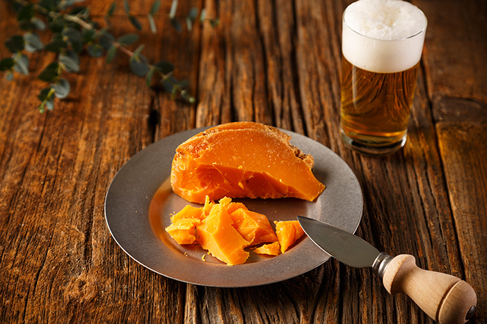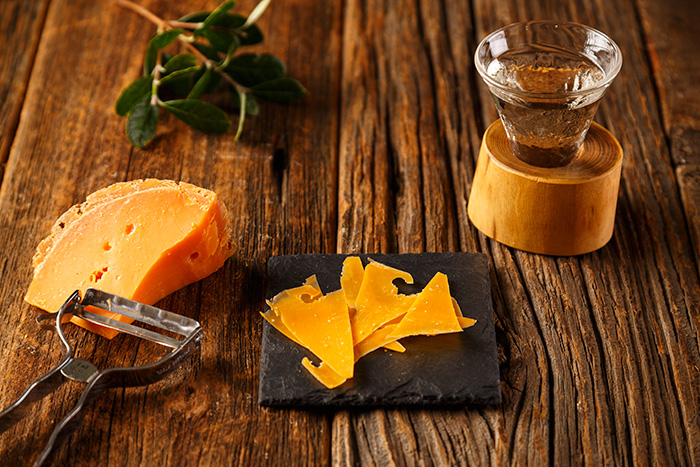 鮮やかなオレンジ色が印象的な「ミモレット」、2~6ヶ月熟成の『ジュンヌjeune』、6~12ヶ月熟成の『ドゥミ・ヴィエイユDemi Vieille』、12~18ヶ月熟成の『ヴィエイユVieille』、18~24ヶ月熟成の『エクストラ・ヴィエイユExtra Vieille』と熟成に応じて呼ばれています。ここでは、旨みが増し深い味わいを実感する18ヶ月熟成(エクストラ・ヴィエイユ)で紹介します。もちろん、どの熟成度合いでも楽しめます。