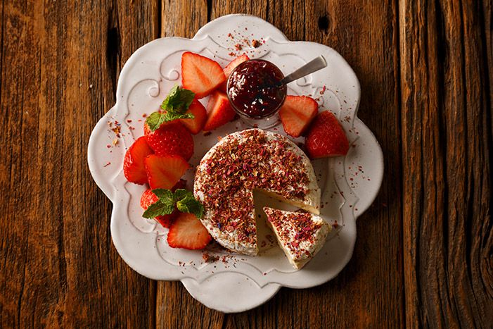 穏やかでクリーミーな「雪印北海道100 カマンベールチーズ」に、ドライストロベリー・ローズ、ポワブルロゼ等がブレンドされたミックススパイスを重ね、さらに、いちごジャムの甘さ、仕上げにいちごのさわやかな酸味で、心地よい満足感を。