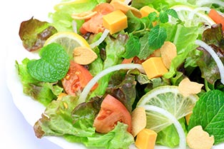 もっともお手軽かつ簡単にトライできるのが、サラダへのトッピング。ブロック状のチェダーチーズを細かくカットして、グリーンサラダの上にのせるだけで、華やかな印象になります。グリーンのベースに、トマトの“赤”やレモンの“黄色”をプラスして、オレンジの差し色を加えてみてください。彩りがよくなるだけでなく、チェダーチーズ特有のナッツに似た風味が、いつものサラダを味わい深いものにしてくれます。