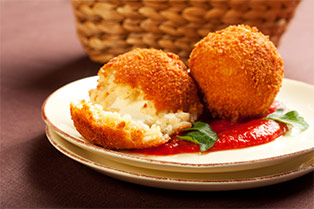また、おかずとしてもおつまみとしてもいただけるのは「ゴルゴンゾーラのコロッケ」。合挽き肉とマッシュポテト等でふだんのコロッケと同じように種を作り、種の全量の半分から1/3を目安に、ゴルゴンゾーラをカット。種の中心にチーズを埋め入れて、衣をつけて揚げます。ゴルゴンゾーラは、「ピカンテ」よりも「ドルチェ」の方がマイルドで食べやすくおすすめです。種自体にしっかりと塩味をつけ、おかずとしてそのままいただくのはもちろんのこと、はちみつにからませれば赤ワインにぴったりのおつまみに♪ホームパーティーでアツアツのうちにお出しして、ゲストの話題をさらってみてくださいね。