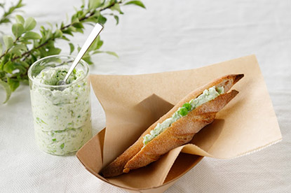 クリームチーズとグリーンピースのほっくりとした食感と甘みが、相性よく重なります。