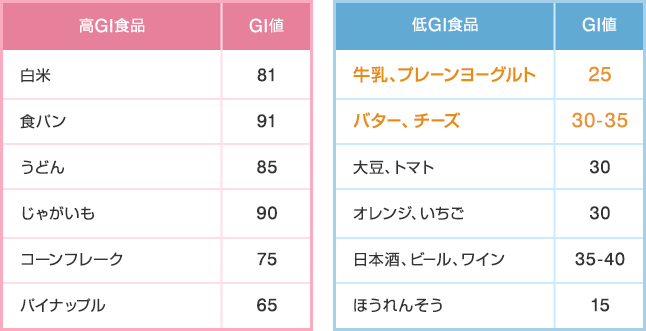 つまり、チーズは低GI値食品なので、血糖値の上昇がゆるやかになります。また、乳たんぱく質はIGF-1を増やし、インスリンの分泌を促します。