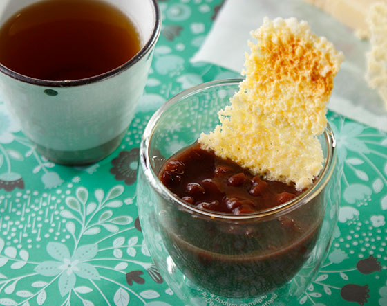 旨味豊かな香ばしい「パルミジャーノ・レッジャーノ」のチップスとぜんざいのマリアージュ。