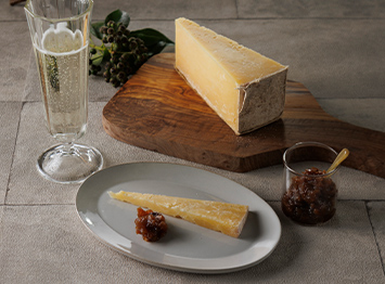 酸味と甘みがチェダーと重なり、まろやかな味わいに。スパークリングワインを合わせて。