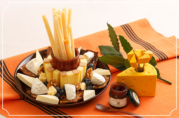 秋をイメージしたスイスと日本のチーズの盛り合わせ