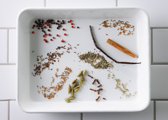 Cardamom 「スパイスの女王」と言われる、インドが原産地のスパイス。爽やかな強い刺激とほのかな柑橘系の香りが特徴で、カレー粉の原料にも。