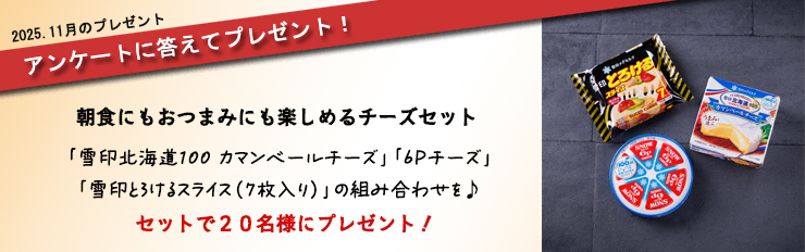毎月、チーズにまつわるアンケートを実施します。お答えいただいた方の中から、チーズ等の詰め合わせをプレゼントいたします。