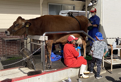 「酪農教育ファーム」では、酪農についての話を聴くことができ、餌やり、乳搾りなども体験できます。また、「バター・チーズづくり教室」では、酪農、生乳生産、牛乳・乳製品ができるまでを一連の流れで体験することができます。そのほか大学生や専門学校生を対象にした牧場実習や、中学生を対象とした職場体験などの受け入れ、近隣中学校などからの要請を受けて、牧場担当者が学校に訪問し酪農に関する講義を行う「牧場出張授業」なども積極的に行っています。