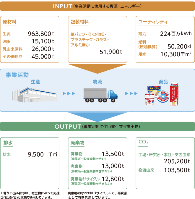事業活動に伴う環境負荷の状況を把握し、使用するエネルギーや水などの資源を効率的に使用し、原材料や包装材料などは環境にやさしいものを開発するなどの取組みを推進しています。