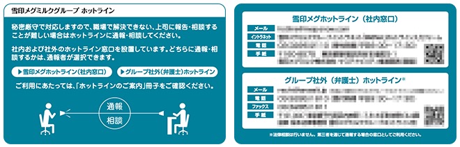- 社内:雪印メグホットライン[グループ社内通報相談窓口]