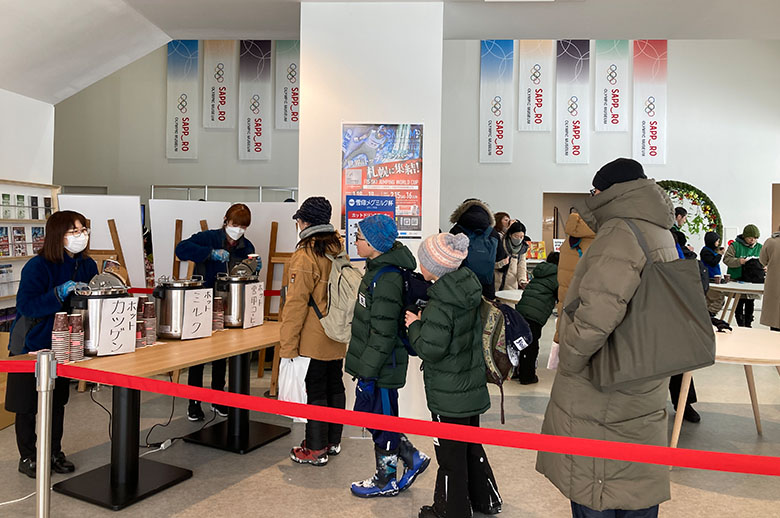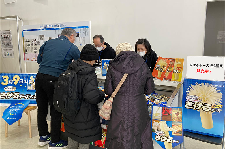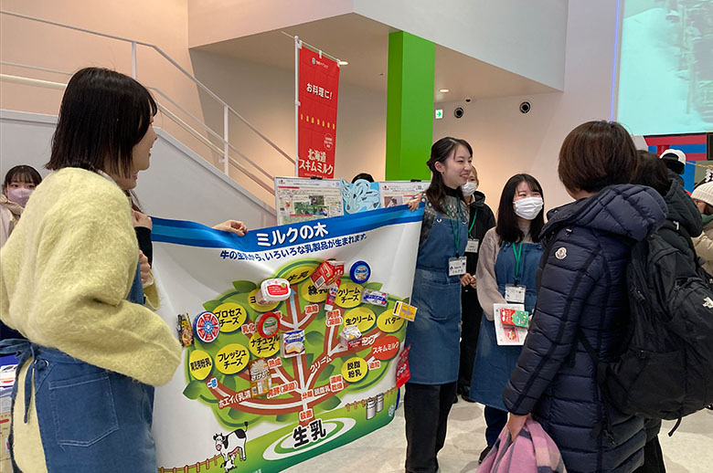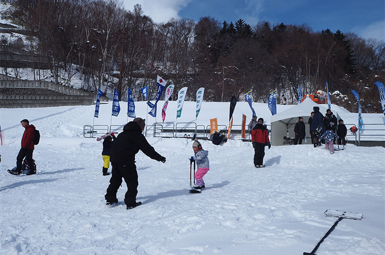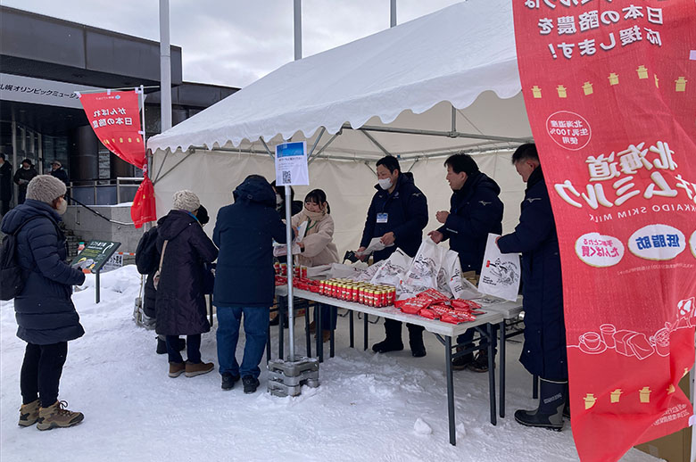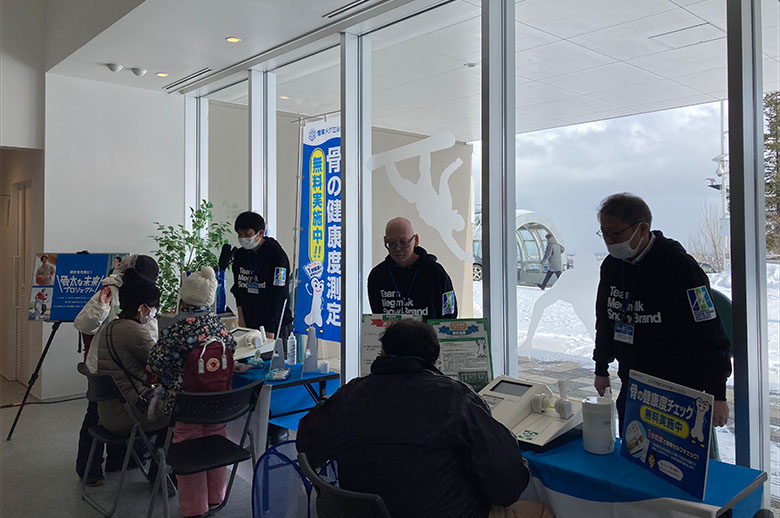 屋内イベントスペースでは、食育活動や骨の健康度チェックのコーナーを設け、皆さまが明るく健やかに過ごせるよう「食の大切さと尊さ」「牛乳・乳製品の価値」をお伝えしました。また、屋外アトラクションコーナーでは、キッズ向けのウィンタースポーツ体験コーナーを設けるなど、ご家族で楽しんでいただけるプログラムをご用意し、競技と合わせジャンプ大会をお楽しみいただきました。