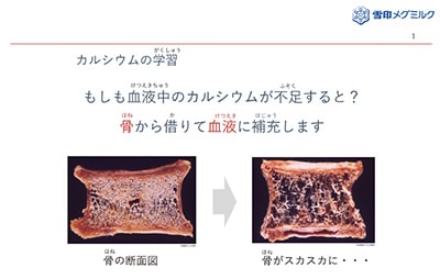 「骨やカルシウムの大切さを学ぼう」 パワーポイントをつかった事前学習