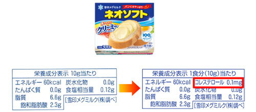 『ネオソフト 300g』、『ネオソフト コクのあるバター風味 280g』コレステロール値を記載しました。