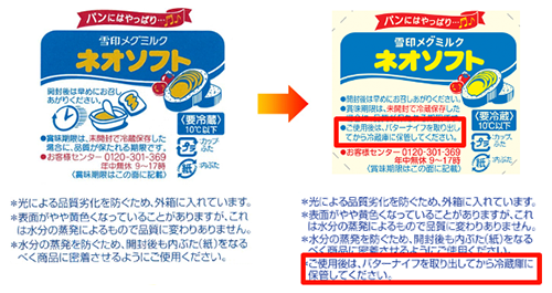 『ネオソフト 300g』、『ネオソフト コクのあるバター風味 280g』バターナイフについての注意書きを記載しました。