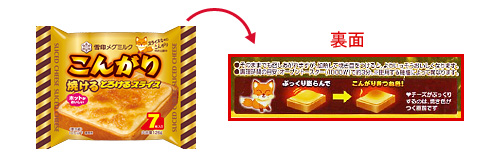 「オーブントースターで焼く」→「チーズが一度ぷっくりふくらむ」→「その直後にこんがりと色づく」という過程が分かり、すぐに焦げ目がつかなくても安心していただけるように、裏面にイラストで図解を入れました。