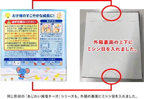 [1才からのチーズ シリーズ]2022年3月 - 捨てるときに便利なように、外箱をつぶしやすくしました。