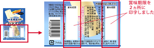 ミシン目で切り離しても賞味期限が分かるように表示しました。