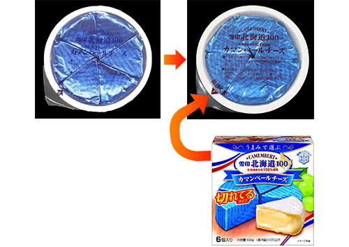 [雪印北海道100 カマンベールチーズ]2019年9月 - 『6Pチーズ カマンベール入り』のアルミ包装をテープが目立つ色に変更しました。