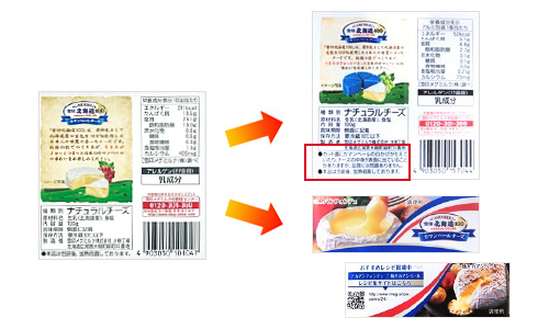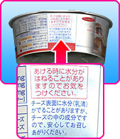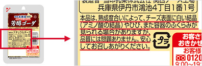 お客様に安心してお召しあがりいただけるように、パッケージに「本品は、熟成度合いによって、チーズ表面に白い結晶(アミノ酸の結晶)やひび、また容器のふくらみが見られる場合がありますが、品質には問題ありません。安心してお召しあがりください。」と商品の原材料による特性を明記しました。