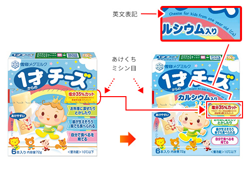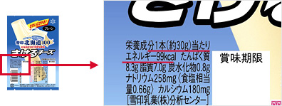[雪印1才からのチーズ]2010年10月(販売終了しました) - 賞味期限を2ヶ所に表示しました。[雪印北海道100 さけるチーズ]2009年7月