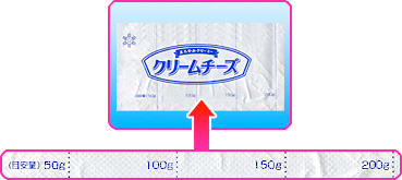 - アルミ包装に、分量の目安を印刷しました。[クリームチーズ200g]2002年10月