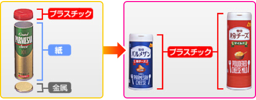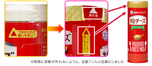 - パッケージ全体をプラスチック化し、分別しやすくしました。[雪印 粉チーズ]