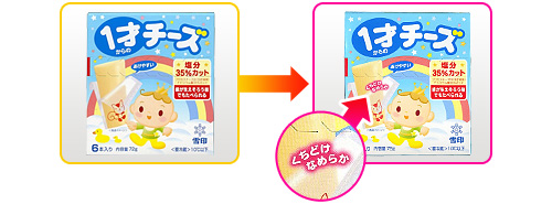 ※現在、お子様向けの『1才からのチーズ』シリーズ、大人の方向けの『あじわい減塩チーズ カルシウム入り』に、この技術が使われています。
