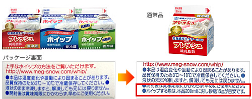 記載内容:「ホイップする際は、本品200mlに対し砂糖15gが目安です。」
