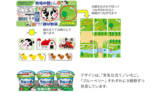 「牧場の朝ヨーグルト」についている台紙に、切り紙遊びのできるようなデザインを追加しました。