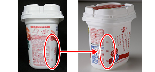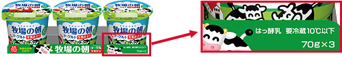「牧場の朝ヨーグルト」シリーズ3個パックの台紙側面に内容量(g)を表示しました。