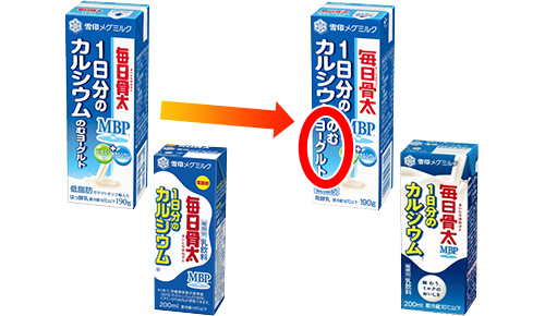 「のむヨーグルト」の文字を大きくして、「乳飲料」ではなく「ヨーグルト」であることを分かりやすくしました。