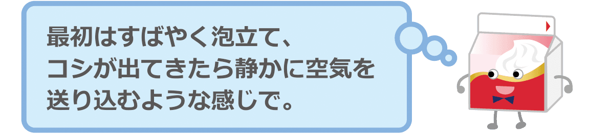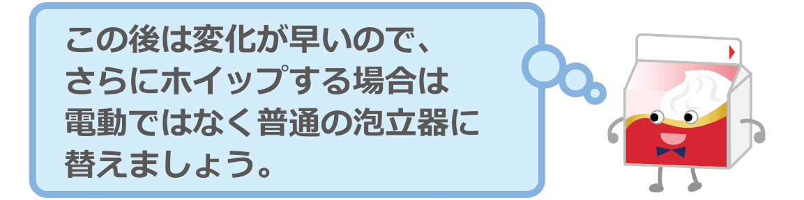 ※これ以上ホイップを続けると分離してしまうことがあるので、注意しましょう。