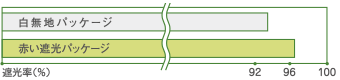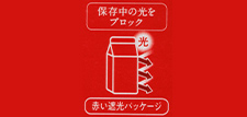 光をさえぎる率は色によって異なります。店頭での蛍光灯などの光は牛乳パックの中まで入り込んできます。これにより牛乳中の成分が変化し、徐々に牛乳本来のおいしさが損なわれてしまいます。そこで、「おいしい雪印メグミルク牛乳」は遮光性の高い赤いパッケージを採用。光を96%以上もカットしています。赤い色でおいしさをしっかりと守っているのは、「おいしい雪印メグミルク牛乳」だけの試みです。