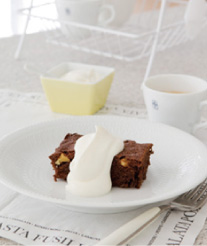 デザートはホイップクリームを添えたチョコレートブラウニーです。