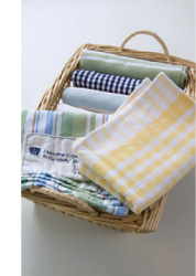 台所仕事をしていると、キッチンクロスは欠かせません。洗ったまな板や包丁の水気をクロスでさっと拭き取れば気持ちよく次の材料を刻めますし、電子レンジから熱いボウルを取り出すときに当てたり、用意した器やカトラリーにふわっとかけてほこりよけにするなど、出番はいろいろです。料理撮影の日などは大量に必要なので、洗い立てのキッチンクロスをいつも引き出しいっぱいに用意しています。使ったあと、枚数が多いときには洗濯機で洗いますが、1〜2枚のときは石けんで手洗いも。とくに調味料のしみがついたときなどは、すぐにもみ洗いしたり、漂白剤につけてケアします。何度も水を通したものは吸水性がよく、使い込むうちに出てくる風合いも大好きです。おみやげなどでいただいたキッチンクロスがあったらしまい込まず、いろいろなシーンで使ってみると楽しいものです。