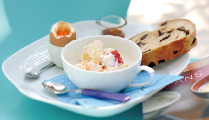 フルーツヨーグルトサラダや、ゆで卵を添えた手軽なブランチを