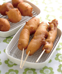 アメリカンドッグの衣やお好み焼きの生地の中に