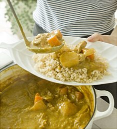 8月、真っ青な空に白い夏雲が浮かんでいます。日中の暑さには降参ですが、朝の涼しいうちなら、掃除や片づけの合間にお昼の準備もはかどります。カレーライスは1年中よく作りますが、とくに夏はみんなのリクエストが集中。牛乳をたっぷり加えたミルクカレーはとくにうちの夫が大好きで、ひと夏には何度も作ります。サーモンときゅうりのサラダは、カレーのサイドディッシュはもちろん、パンにはさんでもおいしい1品です。
