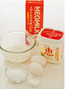 卵は卵黄と卵白に分け、それぞれボウルに入れる。 |