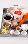 バターは小さい角切り、または薄切りにしてよく冷やしておく。にんじんはすりおろす。レーズン、くるみは粗く刻む。オーブンは200℃に予熱する。 |