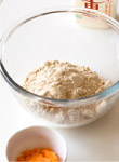 (2)にヨーグルト、溶きほぐした卵、にんじんを加え、粉っぽさがなくなるくらいまで混ぜる(写真b)。 |
