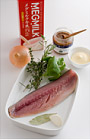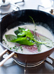 鍋に牛乳を温め、サバ、にんにく、Aのハーブを加えて煮る(写真a)。途中でサバを裏返し、中まで火を通す。 |