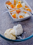 ボウルに(1)のヨーグルトとマヨネーズを入れて軽く混ぜ(写真a)、塩、こしょうで味を調えてから、手で食べやすく割ったゆで卵を加え、黄身がくずれないように混ぜる。 |