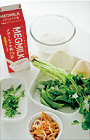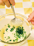 ボウルにAの天ぷら粉と冷たい牛乳のそれぞれ半量を入れ、軽く混ぜる。スナップえんどうを入れて衣をからめ、熱した油でカリッと揚げる。残りのAで同様に衣を作り、刻んだ木の芽を入れて混ぜ(写真a)、たけのこをからめ、熱した油でカリッと揚げる(写真b)。 |